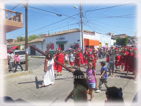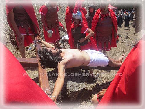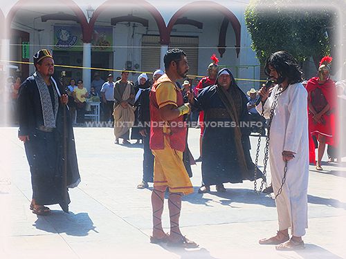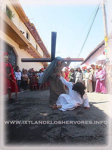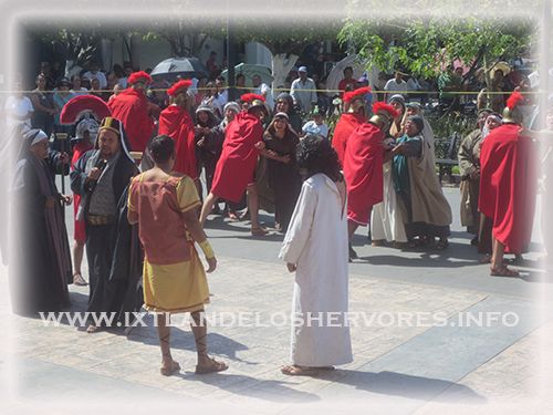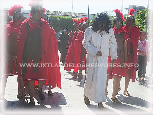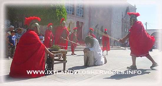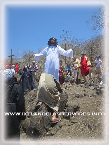 | ................Y ya en el desarrollo del mismo. El singular evento que recuerda La Pasión y el Martirio que vivió Cristo hacía el Gólgota. Aquí en Ixtlán la representación inició entre las 10.36 am. de este día Viernes Santo con una aclamada introducción, literaria y Biblica, a cargo de nuestro Cura y Pastor: Joaquín Árciga Árciga. |