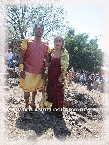 Histriones que encarnaron a Poncio Pilatos y a Claudia, que en la historia Romana. Era esposa de Pilatos, según cuentan los registros originales.