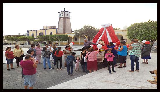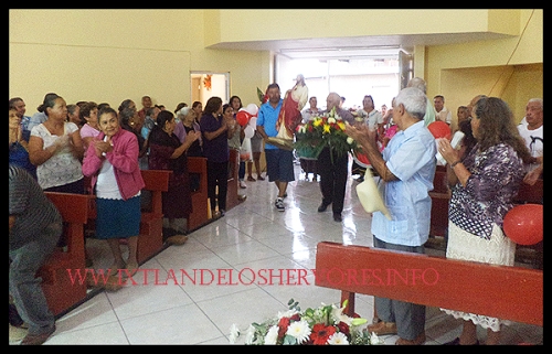 Cánticos, que de alguna manera, van propagando la enorme alegría que llevan las gentes que van con rumbo a La Capilla Del Sagrado Corazón de Jesús para homenajearlo en su onomástico, de gran regocijo general.