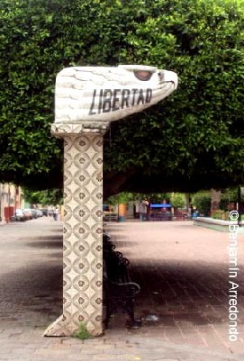 Cabeza de águila ubicada a un costado de la iglesia de Dolores Hidalgo, Guanajuato. |