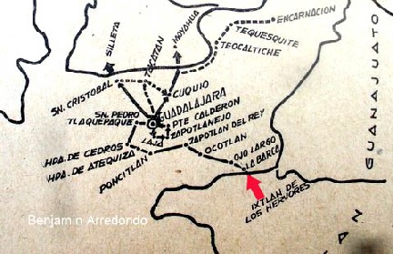 Es conocido que por el pueblo de Ixtlán de los Hervores, el Cura Don Miguel Hidalgo y Costilla también hizo su llegada el día 22 de noviembre de 1810, en donde, según algunos testimonios de personas del mismo pueblo, Don Miguel Hidalgo, pasó una noche en el curato (templo) de Ixtlán, amenizó una misa al día siguiente y de allí se dirigió al estado de Jalisco, hacia Guadalajara, pasando por algunos otros lugares, como lo muestra el mapa.