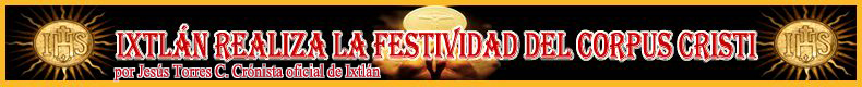 Aquí en Ixtlán por ejemplo, la ceremonia del Corpus Cristi dio inicio en la tarde (7.pm) y el encargado para su práctica fue el Sr. Cura Joaquín Árciga quién dirigió por todo el trayecto, la Liturgia que compone esta sin igual Celebración. Cabe señalar que en la composición de este avance, iniciaron alrededor de 100 almas cuando la fila salió del templo.