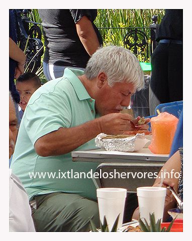 ...............Finalmente. La Kermesse sigue ofreciendo sus deliciosos platillos a toda la comunidad de Ixtlán y a todos los habitantes de las otras comunidades en general. Ya que este Maratón de comida que despuntó entre las 8am. Se piensa culminar por eso de las 10 o las 11pm. Por lo que aún queda algo de tiempo para ir a comer o a cenar.. Ya que el menú variará entre los diferentes horarios según la ingestión.... Así que ya lo saben ¡Y al Ataque mis Valientes Amigos! |