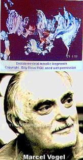 Al respecto de esta aliaciones metalúrgicas, El fallecido Investigador Químico Marcel Vogel, uno de los más antiguos científicos de la empresa IBM, en san José California, y con un personal de 9000 empleados y creador de 32 patentes. Vogel trabajó por 22 años para la IBM, inventando para la enorme compañía de computadoras, el sistema de capa de memoria de discos, que todos conocemos hoy en la IBM. “En 1978 el coronel Wendelle Stevens, le envió ha Marcel Vogel un paquete con los “cristales y las muestras metálicas” que Billy Meier había recibido de los Pleyadianos". |